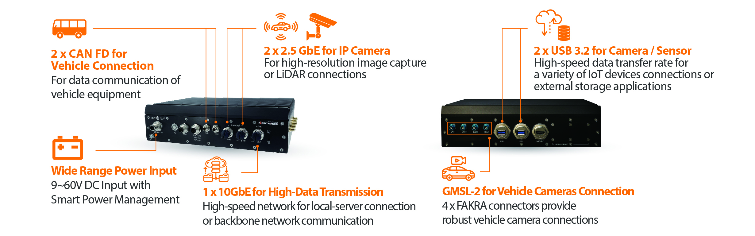 NVIDIA® Jetson AGX Orin™ w/ 1 x 10GbE / 2 x 2.5GbE / 1 x HDMI / 2 x CAN FD / DC 9-60V / IP66 Edge AI Computer